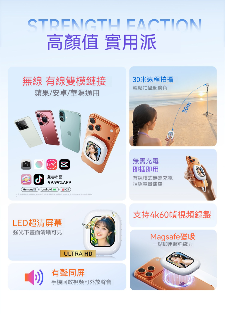 ColorNow TP D Mini 手機磁吸自拍顯示屏(雲朵白),ORIVA 創新質感生活|Neakasa 智慧寵物家電、HOTO工具 清潔用品