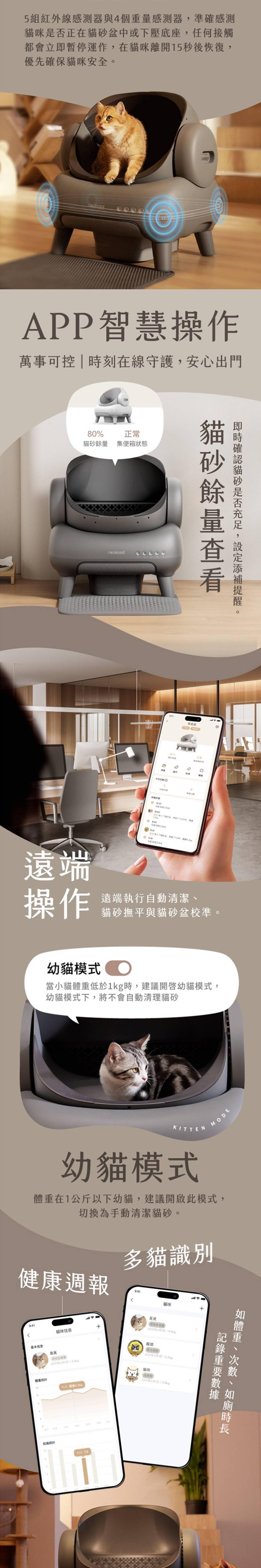 幼貓安全模式:小於 1 公斤自動暫停,安心守護。